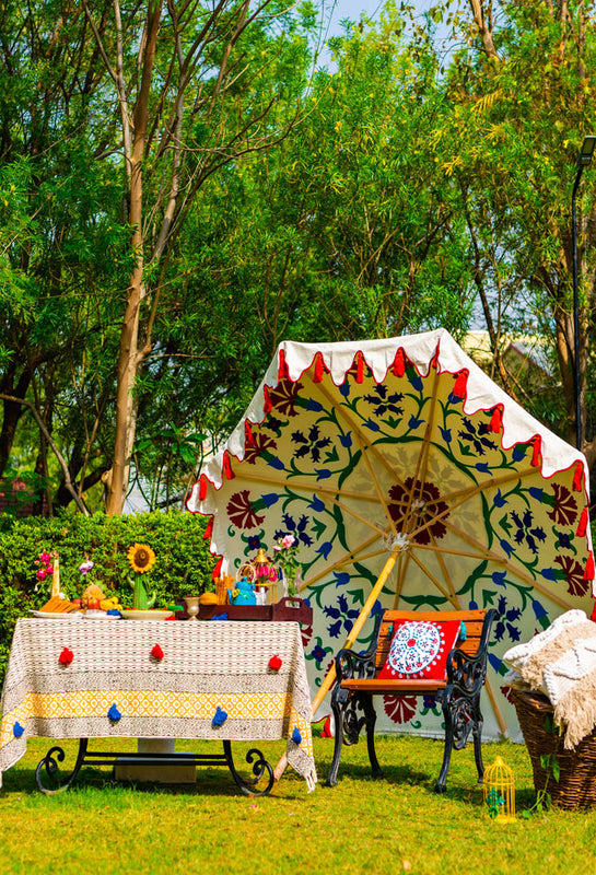 A story of passion with creativity and admiration for the incredible artisans of India. All our parasols and rugs are bold, sophisticated, bohemian and statement making garden masterpieces. Checkout our collection to help you make a timeless choice for your space.